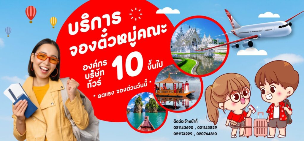 รับจองตั๋วหมู่คณะแอร์เอเชียทุกเส้นทาง เส้นทางในเเละต่างประเทศ ในราคาที่ประหยัดกว่า สามารถโทรสอบถามเพิ่มเติมกับทางเราได้เลยค่ะ